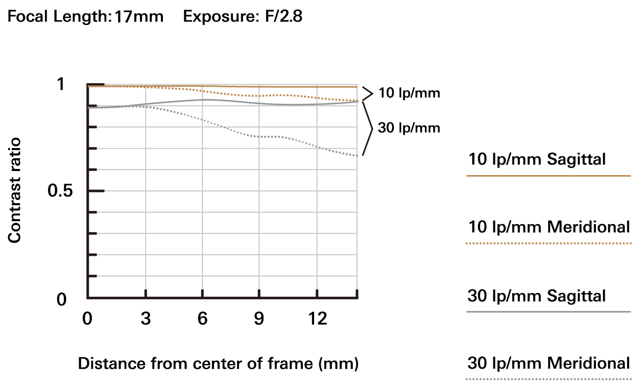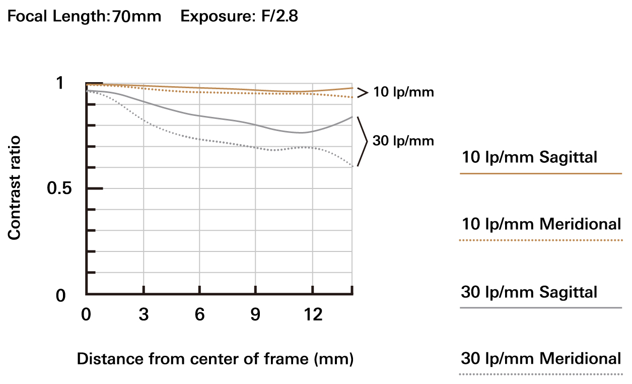 The optical construction of the 17-70mm F2.8 features 16 elements in 12 groups. Two GM (Glass Molded Aspherical) and one hybrid aspherical lens elements are precisely arranged to maintain high-resolution performance from edge to edge.