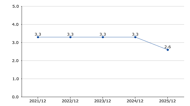 | Fixed assets turnover (times) | 3.3 | 3.3 | 3.3 | 3.3 | 2.6 |
