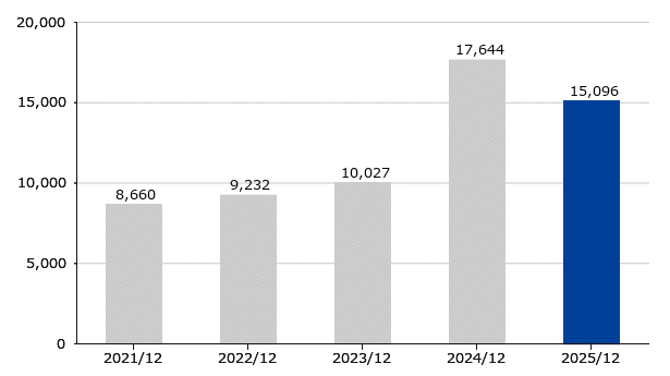 | Cash flows from operating activities | 8,660 | 9,232 | 10,027 | 17,644 | 15,096 |