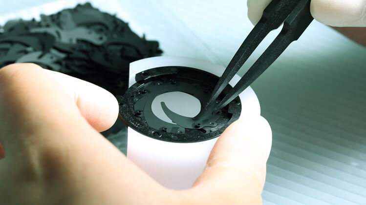 All components including individual modules, cam barrels, main barrels and lens elements come together at main assembly lines. Here, as many as 250 components are assembled to produce one lens.