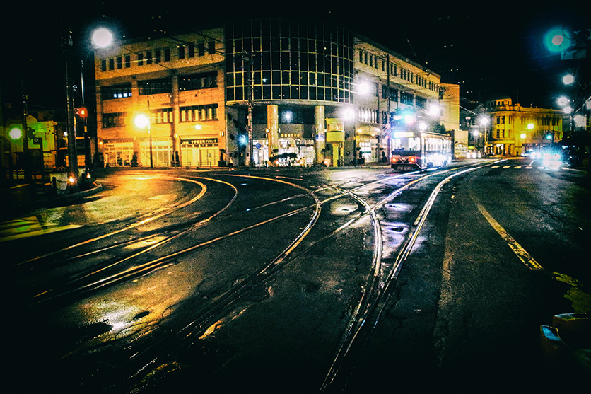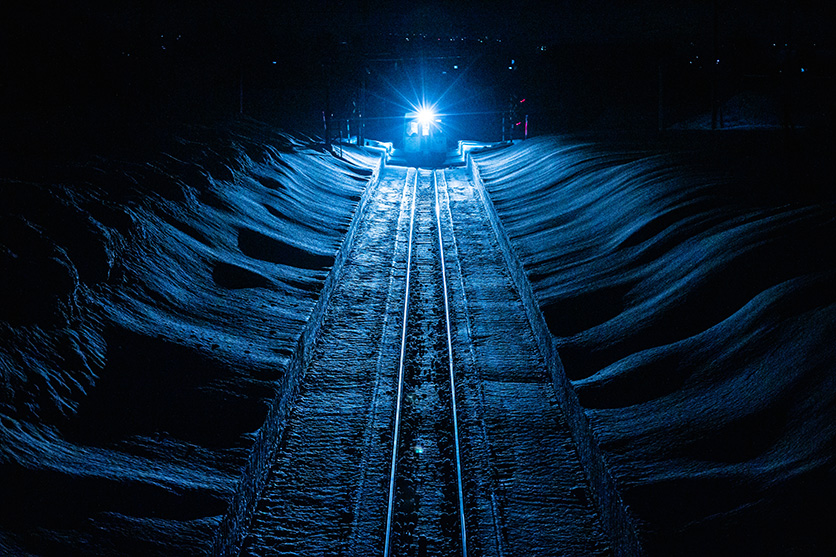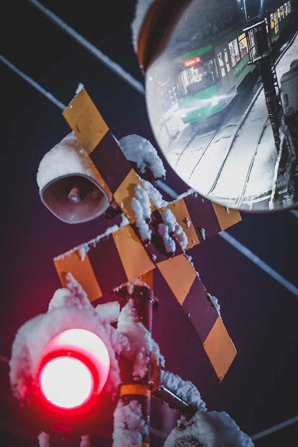 こちらの作品は、冬に一瞬だけ現れた絶景です。荘厳な雰囲気は、まるで海が割れて道が出現したような・・・。旧約聖書にある、モーゼのエピソードを連想させる光景です。青味がかったホワイトバランスが神聖さを演出しています。今回は明るい作品の応募が多かったのですが、こちらはシリアスな作品です。通常の鉄道写真とは、一味違う切り口に仕上がっています。夜間の撮影はピントも合わせづらいと思いますが、手堅くまとまっています。かなりの経験者でないと難しい撮影環境です。素直に上手でいい作品だなと感じた一枚でした。