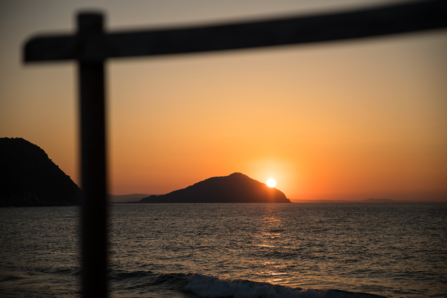 芥屋の海岸から見る玄界灘へと沈む夕焼けが空を茜色に染めていくグラデーションが美しい。風が強い日だったが寒さや時間を忘れていつまででも見ていて飽きないのが夕暮れ風景だ。
