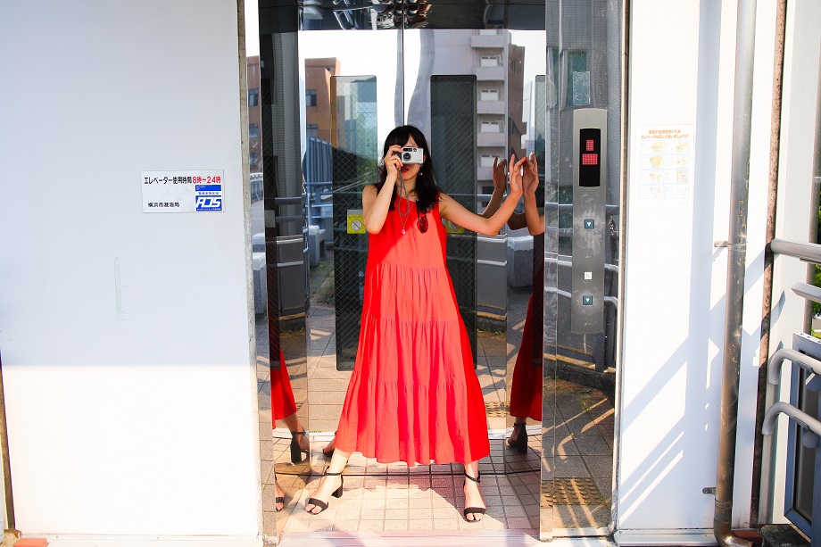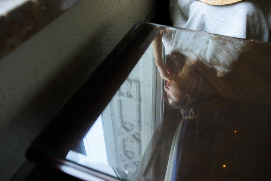 これも少し変わった場所で撮影。自分が写り込まない場所をコントロールして数枚素早く撮影します。鏡の質感が艶めかしく描写されています。