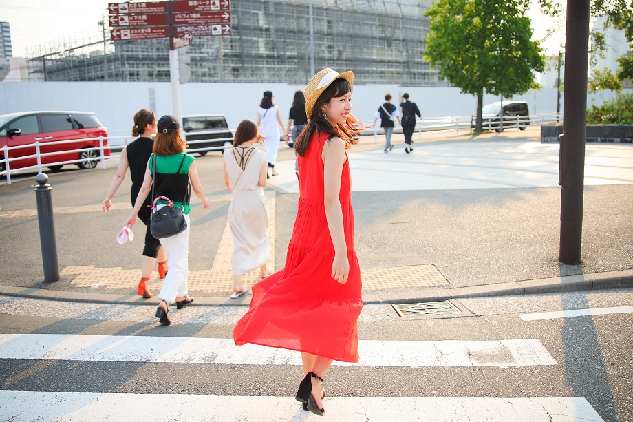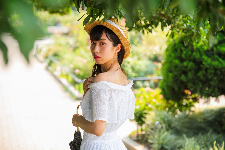 外へ。普段は35mm F/1.8の単焦点だけでポートレート撮影をしていましたが、今回はもっと自由度が高くなります。とは言え、しっかりと彼女と自分との距離感を設定しておかないと曖昧な写真になってしまいがちです。まずは身に染み込んだ35mmの距離感で撮影。
