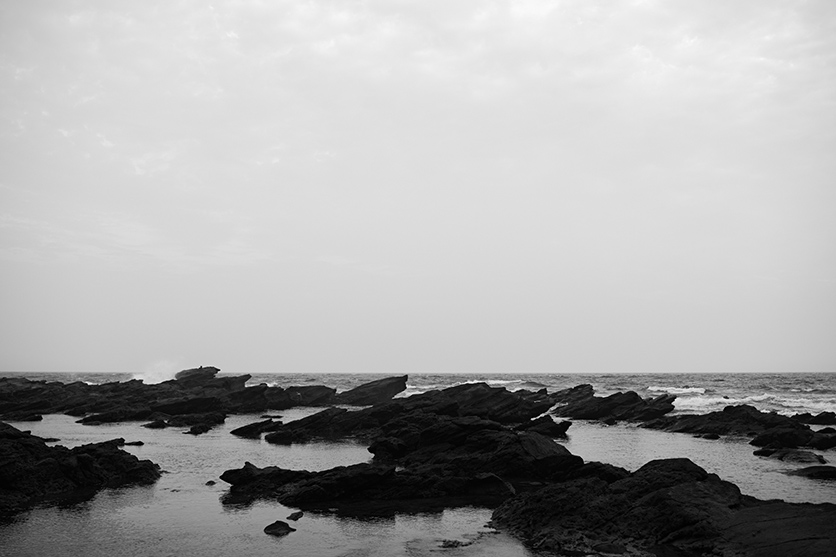 F/11近くまで絞った一枚は、海のさざなみや岩の質量まで感じられるような気がします。あいにくの曇りで夕陽は出なかったのですが、曇りにもかかわらず岩面のコントラストがアンダー部分でも色濃く立体感をもって残っている点。海面を超えた先にある岩場までがきちんと描写されている点など、開放F/1.4だけではなく絞って更に表現が広がるところに魅力を感じます。