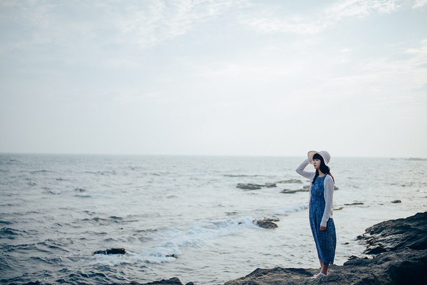 こちらは同じ海を、今度は開放のカラーで一枚。ピント面の被写体が浮き立っているのと、思い通りのカラーに染まる階調性の高さに助けられます。また、開放で距離があるにも関わらず、岩場の立体感や波の解像感が生きている点も特筆すべきポイント。