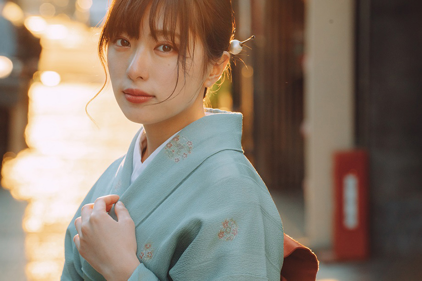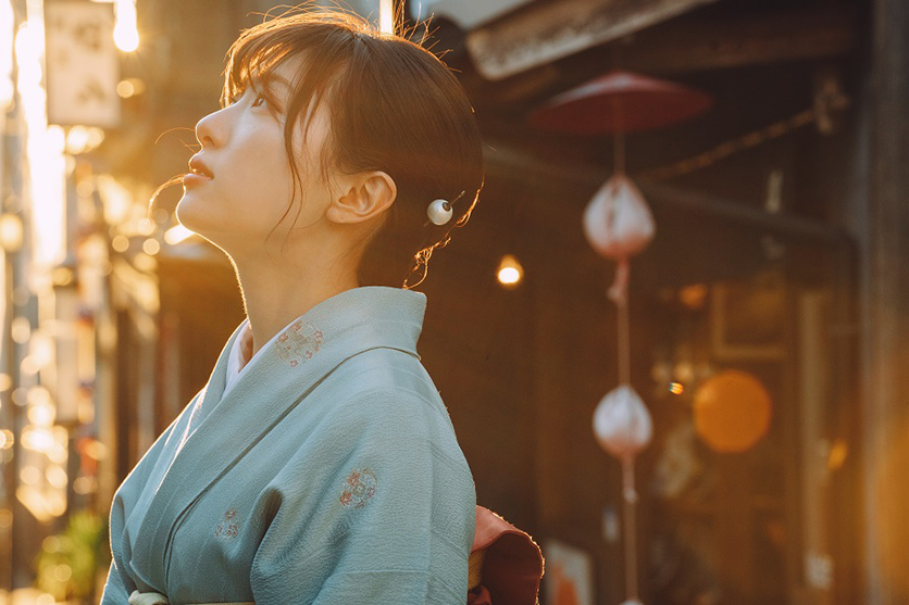 モデルさんに着物を着てもらい、はじめの方に撮った一枚。光の当たった右目のクリア感。着物の質感、そして色味。柔らかいボケ感に、くっきりしすぎていない良い具合の玉ボケ。解像感もバッチリ。製品を軽くするために妥協なんて全くしていないことが分かる素晴らしい写りでした。