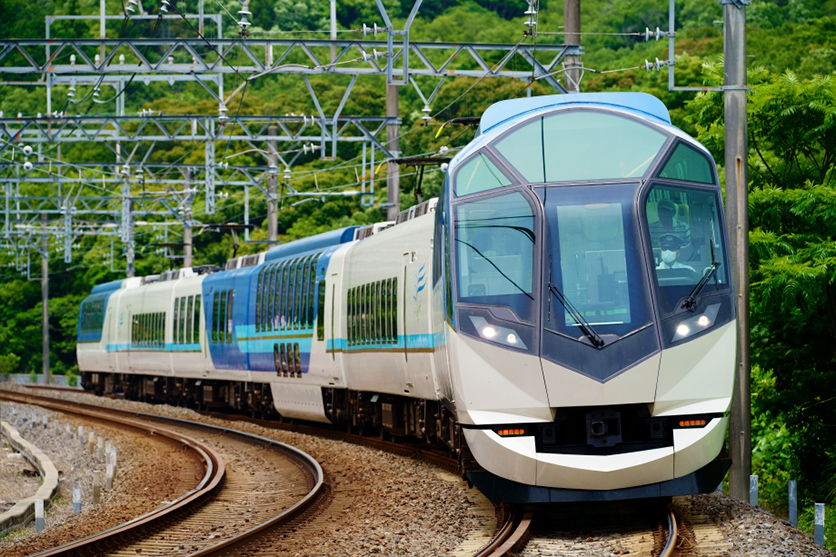 上記までの作例は全てマニュアル(MF)でピントを合わせていましたが、ここでタムロン初搭載のリニアモーターフォーカス機構「VXD (Voice-coil eXtreme-torque Drive)」によるオートフォーカス(AF)を試してみます。まずは列車が正面を向く構図です。被写体に選んだ「しまかぜ」はガラスが大きく、どのタイミングなら架線柱などの障害物が写り込まないか、列車が来てみないとわかりません。要するに事前にMFでピントを合わせることができないので、信頼できるAFが必要になるわけです。AF-Cに設定の上、フォーカスエリアをフレキシブルスポットで列車の鼻先にセット。「VXD」によるAFは音もなく一瞬でピントをあわせてくれ、前後のカットも正確にピントが合っていました。