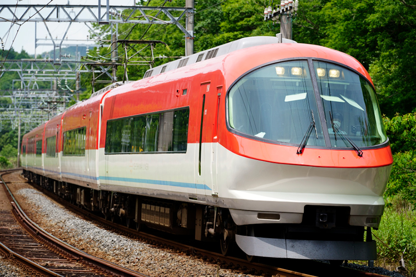 今年3月にデビューした話題の新型近鉄特急「ひのとり」です。艶のある優美な車体に周囲の景色を映しながら名阪間を約2時間で結んでいます。70-180mm F2.8は車体のメタリックレッドを正確に描き出してくれました。このレンズは開放F2.8通しで絞り値の選択肢が多く、幅広い表現ができます。車両の先頭部分と前後数メートルの範囲にピントが合うよう、F5.6で撮影しました。このように望遠で編成写真を撮影する際によく使うF5.6の絞り値で、車両の「顔」を引き立たせる背景の美しいボケ味が得られるのは、F2.8通しレンズならではの「余裕」と言えるでしょう。