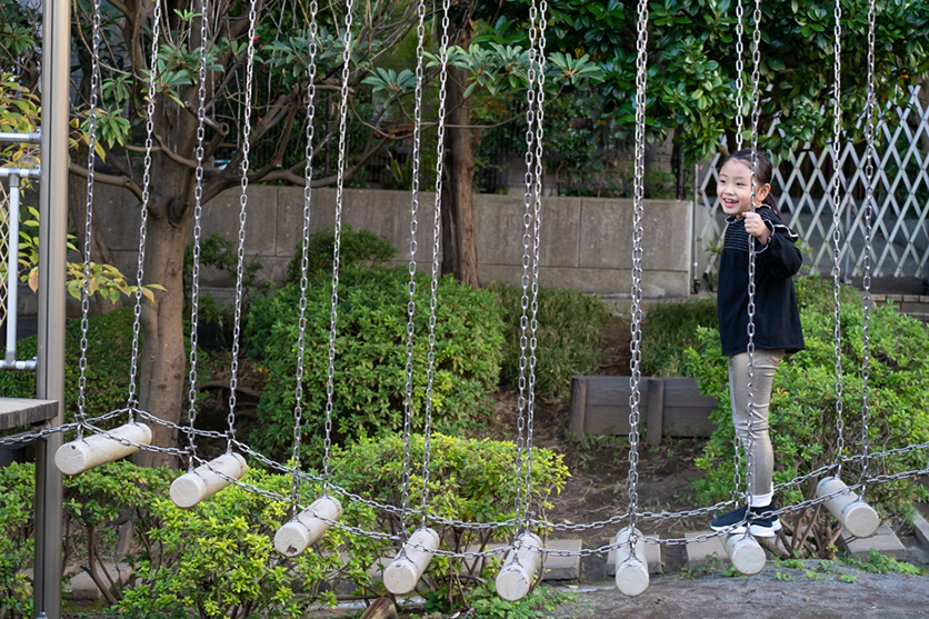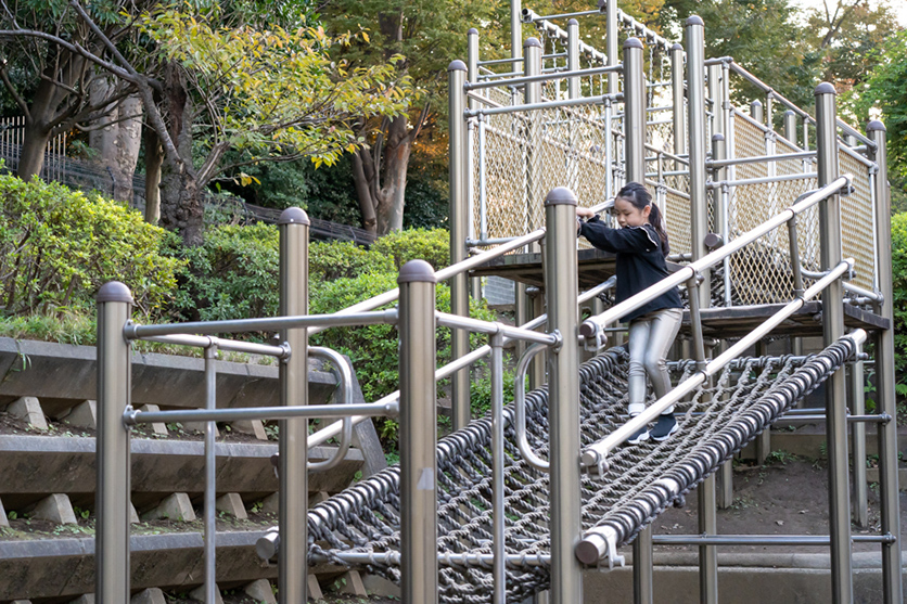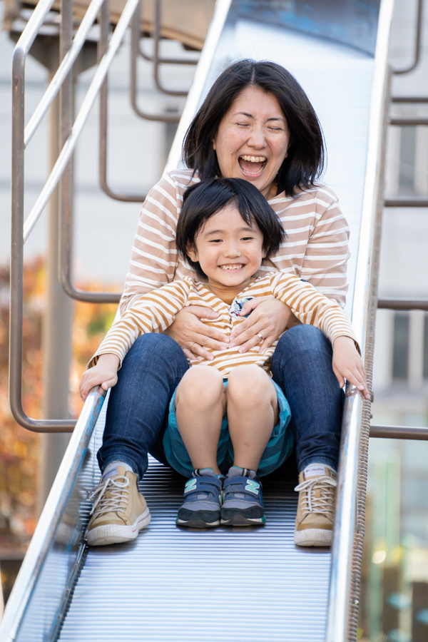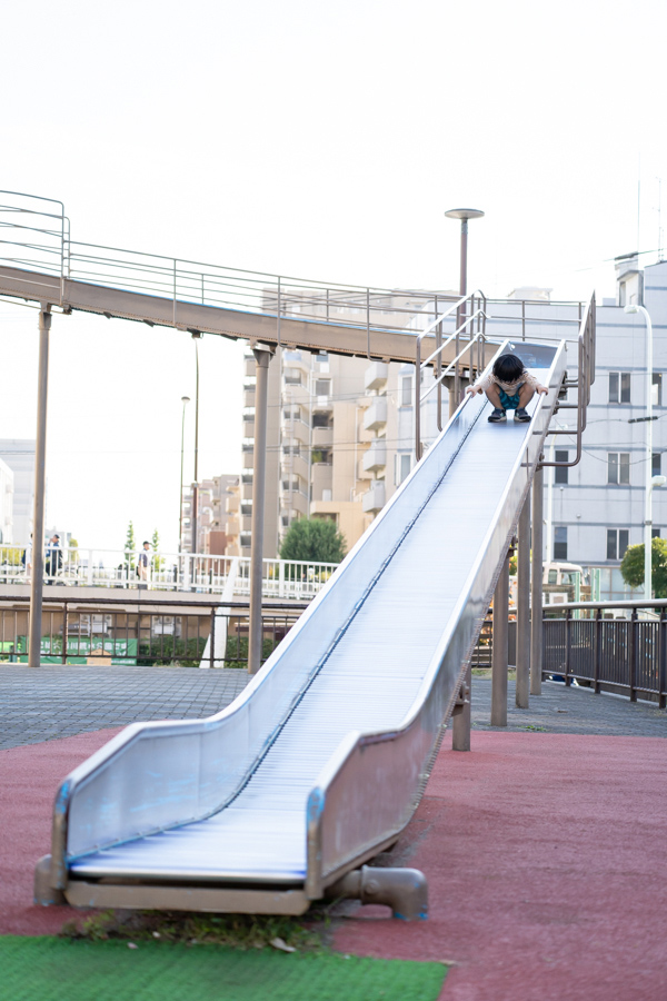 こちらは75mmで捉えた滑り台の全体像です。300mmとの違いは一目瞭然だと思いますが、70mm付近では高くて長い滑り台の全体をおさめる事ができます。