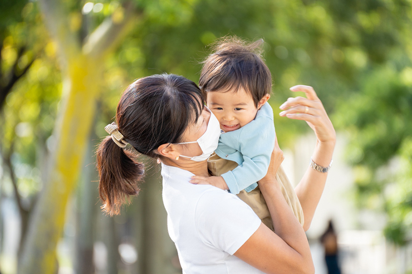 ママの「たかいたかい」からの抱っこに、満足げな表情。レンズを上下に動かしながら撮影しましたが、レンズに手ブレ補正はなくても、カメラボディ側の機能を活用して全く問題ありませんでした。