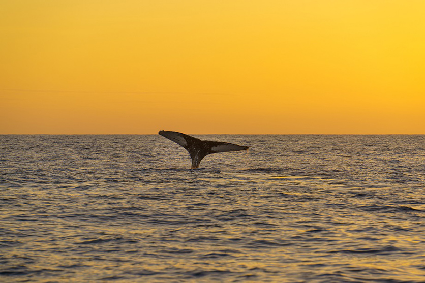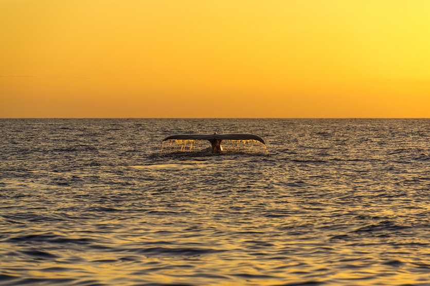 70-180mm F2.8 (Model A056)でとらえた作品をご覧ください。百聞は一見にしかず、鯨の潜行の瞬間です!これが撮りたかったのです。しかも爆焼けの夕日をバックにしたこの一枚は、ここに連れて行ってくださった地元のガイドさんさえ「あんたたち運がいいねえ!」と絶賛してくれました。タムロンの70-180mm F2.8は、AFの正確さと速さがピカイチで、しかも軽い。外洋の荒い波に小さなクルーズ船で漕ぎ出した時、重量のある超望遠レンズだとおそらく抱えるのも危険だし、何よりほんの0.5秒くらいで海に入ってしまう鯨の尻尾を捉えるには重たいレンズは不利に違いないと判断して、この軽くて俊敏でかつ描写も最高の、近年のタムロンレンズの最高傑作を荷物に入れたのでした。このチョイスは大当たりでした!!