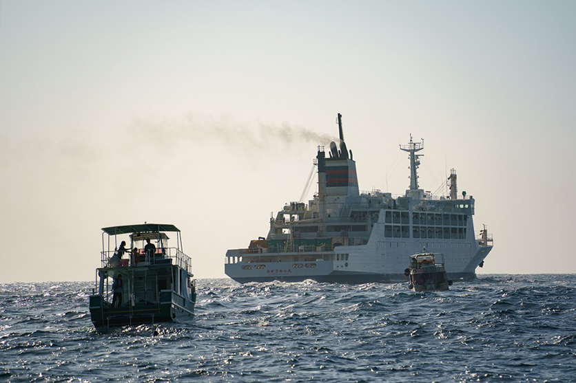 28-200mm F2.8-5.6 (Model A071)が大活躍するのは、「焦点距離が読めない時」です。それは一つ前の作品のようなメインの被写体に近づくことができない時だったり、あるいは複数の被写体のサイズが全然違う場合などで、「どのレンズを使おうかと迷ってる暇がない場面」です。この写真は、小笠原の名物となっている、「お見送り」のシーン。小笠原には1週間に一度だけの船便で新たな旅人たちがやってきますが、東京に向かって帰って行く時には、先に来ていた旅人たちが帰路につきます。彼らが父島を離れるとき、島の住民の方々が別の船に乗って「おがさわら丸」を追いかけていくのです!この感動の瞬間を見て小笠原を離れるのですが、一度見るともうここが故郷のように思えてきてしまいます。