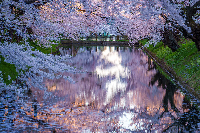 桜の撮影で一番使用頻度の高いレンズって何ですか?超広角マンを自認する私でさえ、実は桜の時期は望遠を持ち出すことが多いのです。その理由は、桜を超広角で撮ると意外とスカスカになるからなんですね。それは弘前のような世界最強の桜を誇る場所でも一緒。むしろあの弘前の強烈な「桜の圧」を出すためには、他の場所以上に望遠が必要だと現地で感じました。今回のキラーショットでも、望遠パワーが遺憾無く発揮されています。