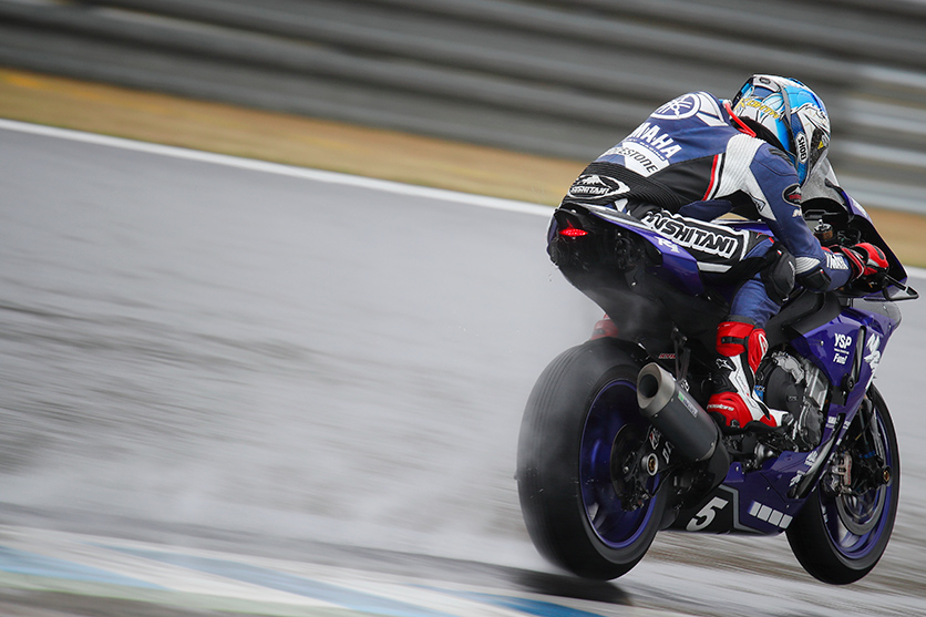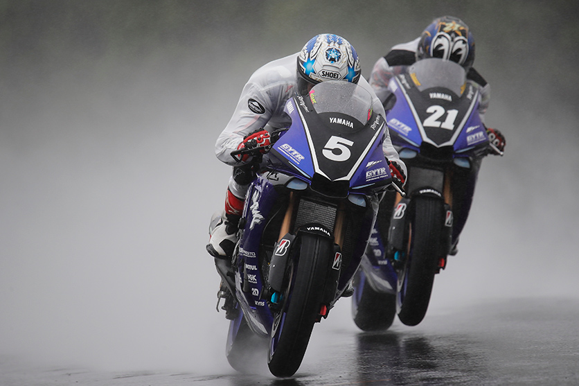 マシンを真っすぐに走らせるのも大変な大雨の中で、並走に近い状態で直線を駆け抜ける二台。怖いなと思う気持ちより、ゾクゾクしてしまった瞬間。