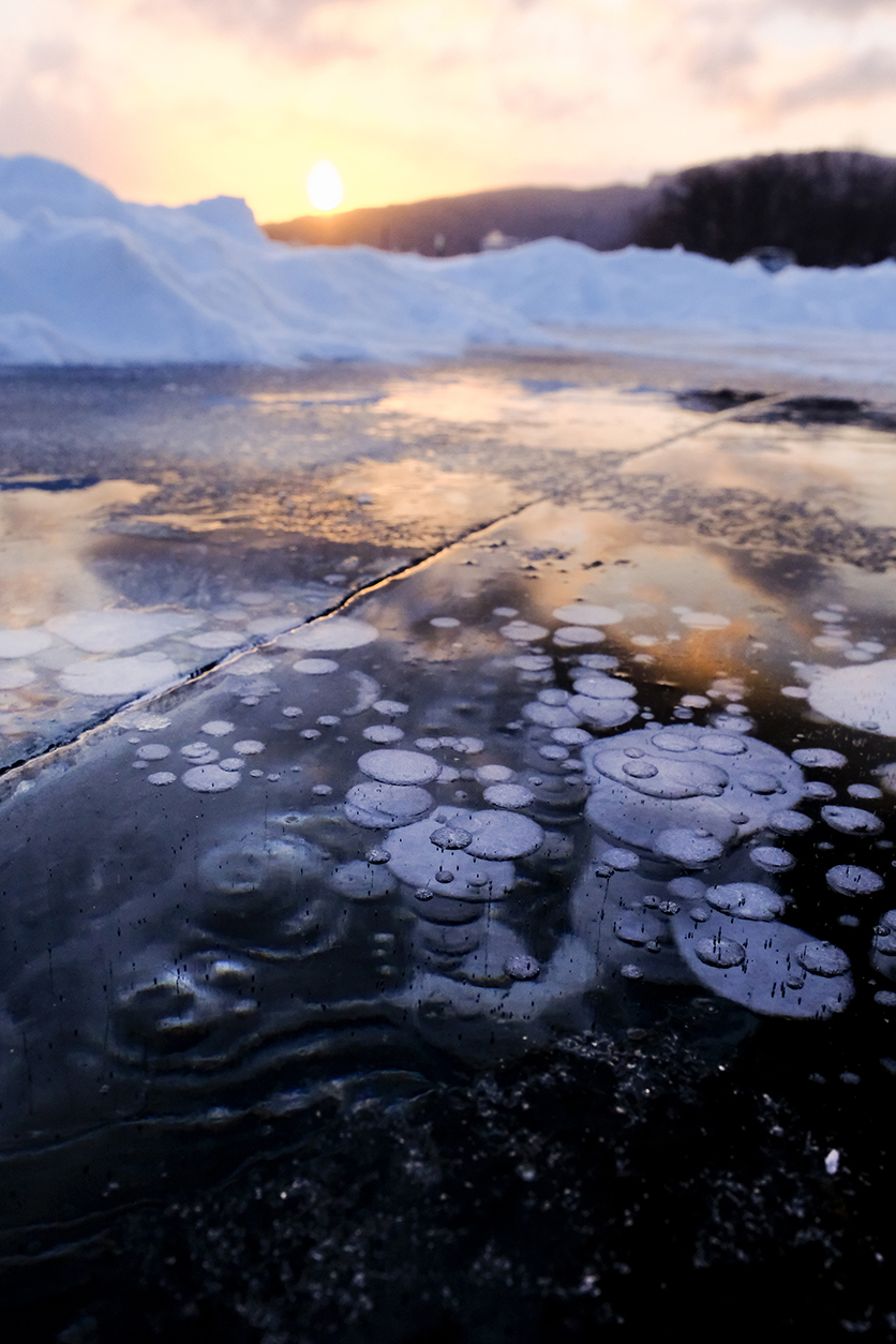 タムロン11-20mm F/2.8 Di III-A RXDで表現できる世界、それは超広角ズームならではの広大なシーンだけではありません。最短撮影距離が広角端0.15m、望遠端0.24mと短いので、被写体へ思い切り近づいたワイドマクロ撮影が可能です。例えば北海道・阿寒湖で撮った1枚。早朝の湖面に積もる雪にぐっと近づき、朝日と山並みを背景に捉えました。さらに沖縄の桜ではF2.8通しを組み合わせることで前ボケの表現もプラス。どちらも11-20mm F2.8ならではの表現です。