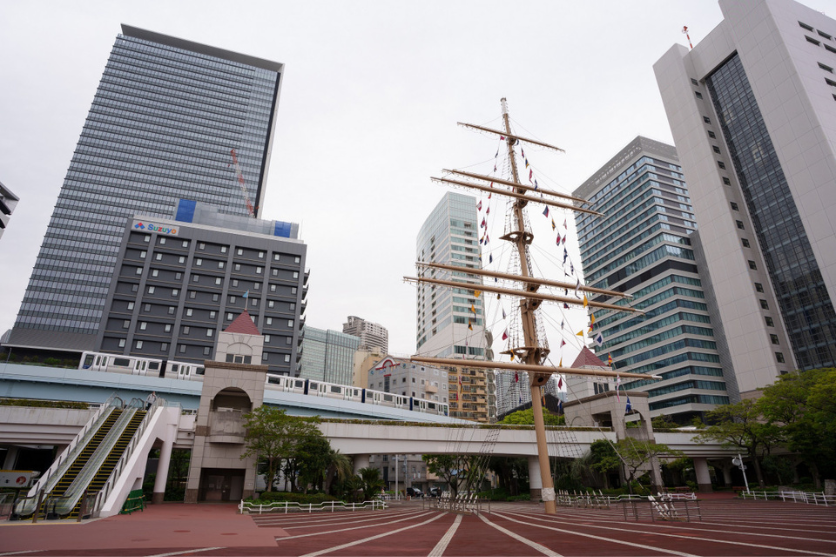今回の伊豆大島星景写真ツアーの始まりである竹芝客船ターミナルで撮影した一枚です。マストのオブジェが象徴的なこの場所に来ると、いよいよこれから船旅が始まるぞという気持ちになり胸が高鳴ります。20-40mm F2.8の20mm側では、広角特有のパースを強調した撮影ができます。竹芝駅へ向かうゆりかもめがタイミング良く通過したのでパシャリ。