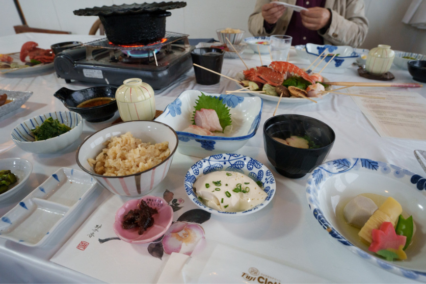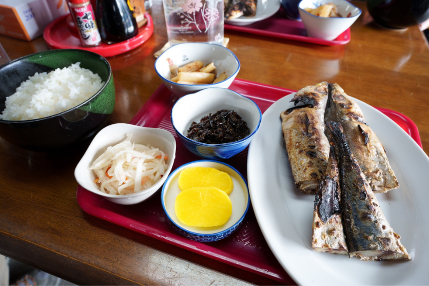 伊豆大島での最後の食事は、特産品であるくさやの定食をいただきました。店内に漂う独特のにおいに参加者さんはびっくりされていましたが、実際に食べ始めて見ると旨味が凝縮された肉厚の身の美味しさに夢中になってしまいました。旅のラストにふさわしいご飯をいただいて、いよいよ帰り支度となりました。