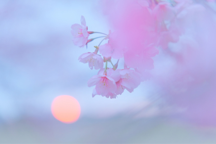 早朝に気持ちの良い桜並木をテクテクと歩きます。曇り空でちょっと残念な気持ちもありましたが、東の空の隙間から朝日が少しだけ顔を出してくれました!嬉しくなって、これを活かして撮影しようとしたところ、きれいな桜の花がついた枝を見つけて、太陽を玉ボケにして撮影してみました。こういった暗い状況での手持ち撮影はかなりシビアになりますが、ズーム全域で大口径F2.8と、手ブレ補正機構VCのおかげでこのように、今までは手持ちでは撮影できないような状況での撮影もできるようになりました。