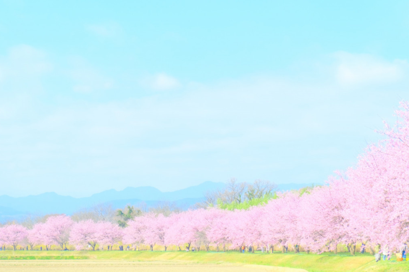 今回これが撮りたかったのです。青空と桜並木と奥に見える山並み。埼玉とは思えない (笑)、この景色が僕は好きです。桜に寄った写真はどこでも撮れますが、このように引いた画で撮れることができて、人工物も入らない場所は関東ではなかなかありません。さっきまで曇りで泣きそうだった僕の気持ちもこの青空のように晴れ、気持ちよく次の場所に移動することができました!安心したらお腹も空いてきましたね。
