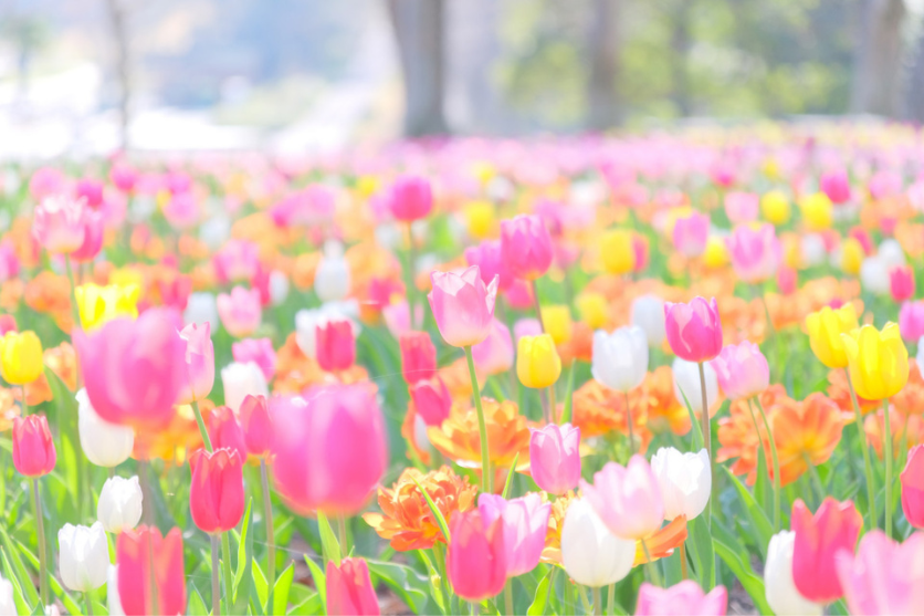 今回の旅の最後の写真は、早咲きのチューリップです。毎年植え方が変わるのですが、今年は様々な色がミックスされた植え方で、僕好みのカラフルなチューリップ畑になっていました。逆光側に周って望遠側で撮影。背景がとにかくカラフルなのでそれを伝えられるような構図にしました。ここは楽しすぎて、この場所だけで30分ほど撮影していたかと思います。春はお花も多いですがその時期が短いので、時間がどれだけあっても足りませんね。