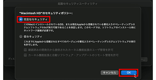 Appleシリコンを搭載したMacのセキュリティーポリシー変更手順