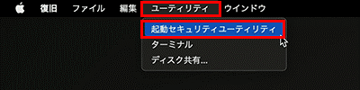 4. [ユーティリティ]をクリック後、[起動セキュリティユーティリティ]をクリックします。