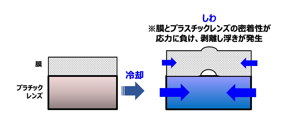 そこでタムロンでは、高温耐久プラスチックレンズに施すコーティング技術を開発。クラック・しわ発生のメカニズムに着目し、成膜条件を最適化しコーティングを施すことで、車載用レンズの要求に耐え得る製品の生産を検証レベルで実現しています。